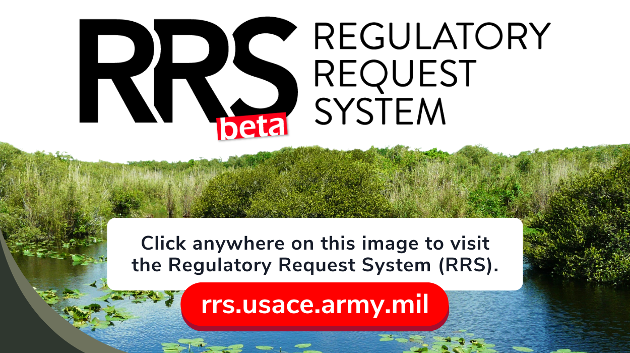 USACE is pleased to announce that the new national online application portal and management platform, known as the Regulatory Request System (RRS) now includes an electronic submission option for permit applications. This platform has been introduced to modernize our permit application process and to address our users' expectations by providing a straightforward and transparent process for the submittal of permit requests.